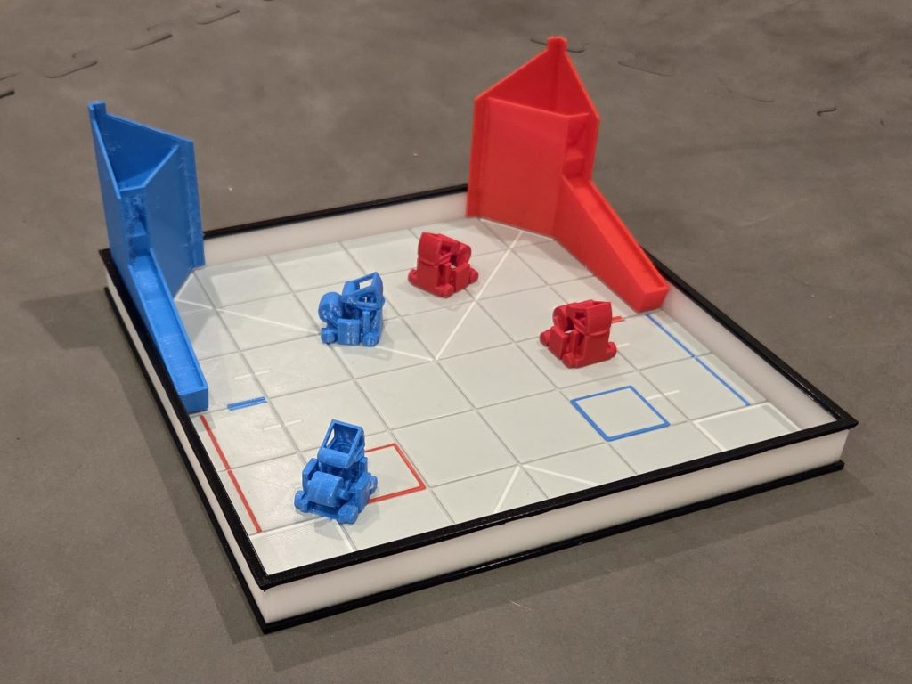1:18 scale model of the FIRST Tech Challenge (FTC) Decode game field for 2025-2026 season. Infinity Tech FTC 13684 created this model to discuss game strategies. We also use it to plan match strategize with our alliance partners at competitions.